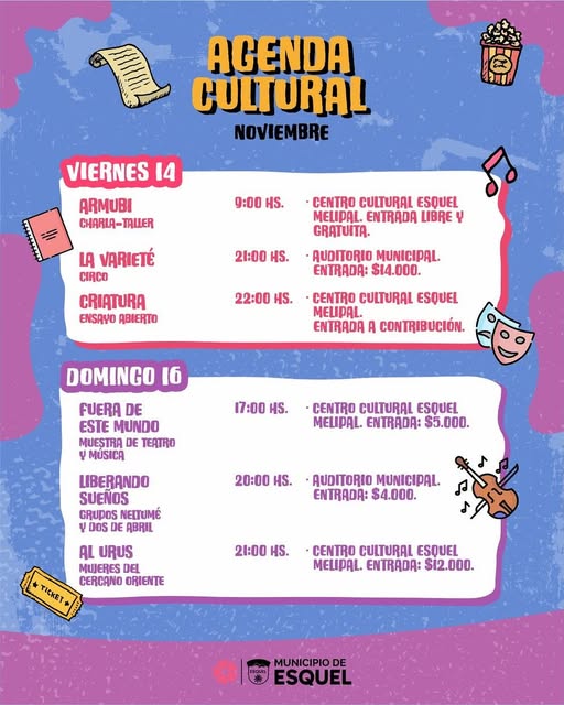 La Municipalidad de Esquel, a través de la Subsecretaría de Cultura y la Subsecretaría de Deportes, dio a conocer la agenda de actividades culturales y deportivas previstas para este fin de semana, con propuestas pensadas para toda la familia.