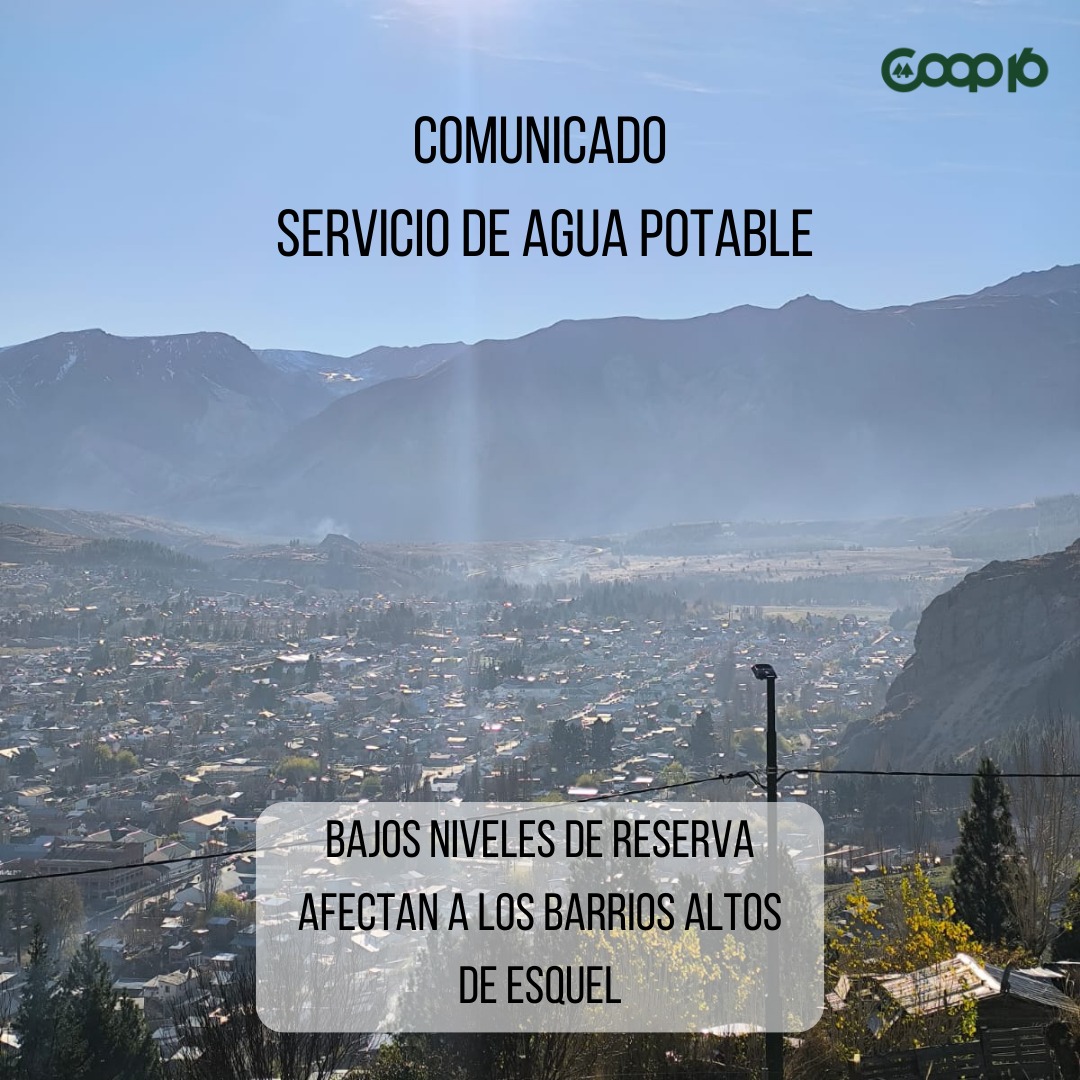 La Cooperativa 16 de Octubre Ltda. emitió un comunicado dirigido a la comunidad de Esquel informando que, a raíz de las altas temperaturas registradas y del incremento en el consumo de agua durante la última jornada, los niveles de reserva del sistema de agua potable se encuentran seriamente comprometidos.