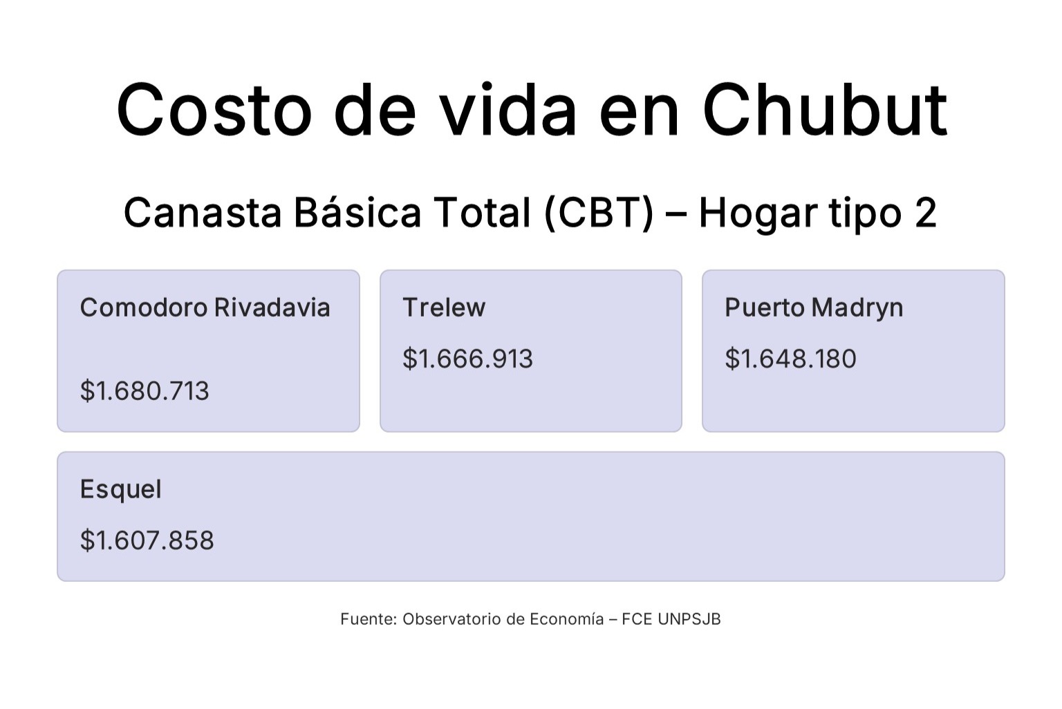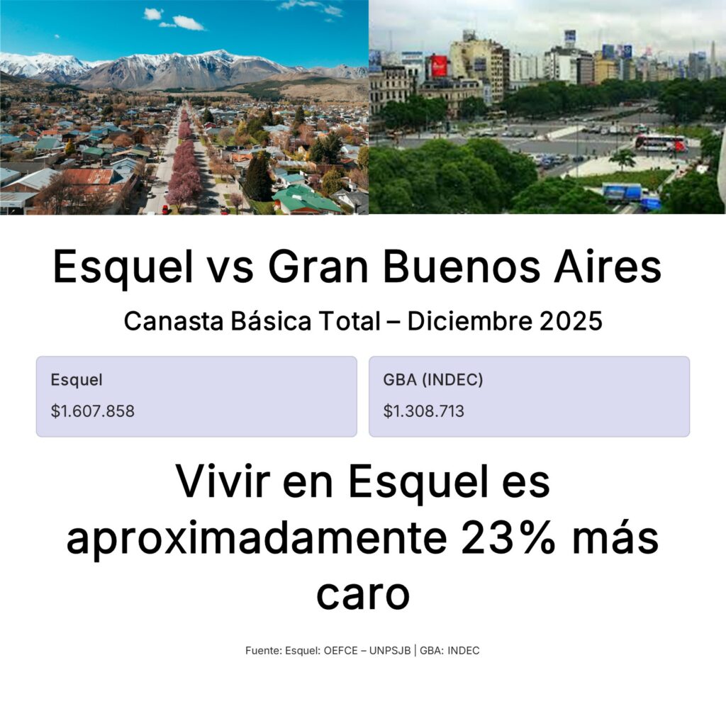 En este escenario, Esquel se ubica levemente por debajo de Trelew, Puerto Madryn y Comodoro Rivadavia, aunque sigue formando parte del grupo de ciudades con mayor costo de vida en Chubut, muy por encima del promedio nacional.