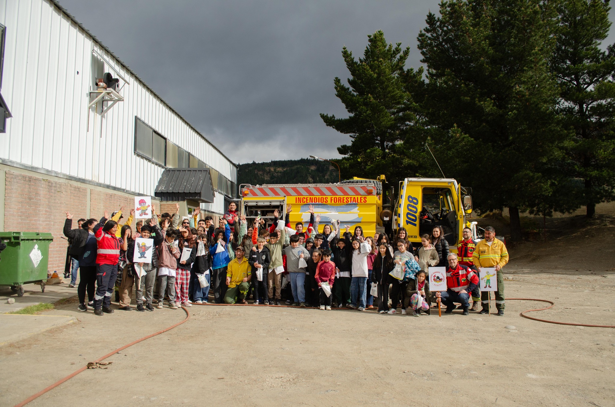 Estudiantes de distintos niveles participan de actividades donde aprenden sobre el valor del bosque nativo, el rol del fuego en los ecosistemas, el trabajo de los combatientes, el apagado correcto de fogones y las medidas para reducir el riesgo en zonas de interfase.