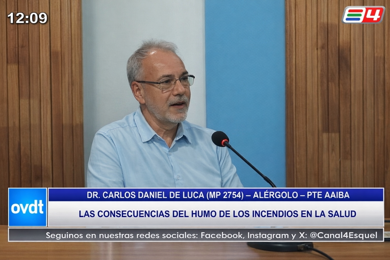 En diálogo con Dante Lobos en Otra Vuelta de Tuerca (por Canal 4 y FM Sol), el médico Carlos Daniel De Luca (MP 2754) explicó que el humo de los incendios forestales afecta la salud a través de distintos mecanismos, principalmente por la inhalación de partículas extremadamente pequeñas.