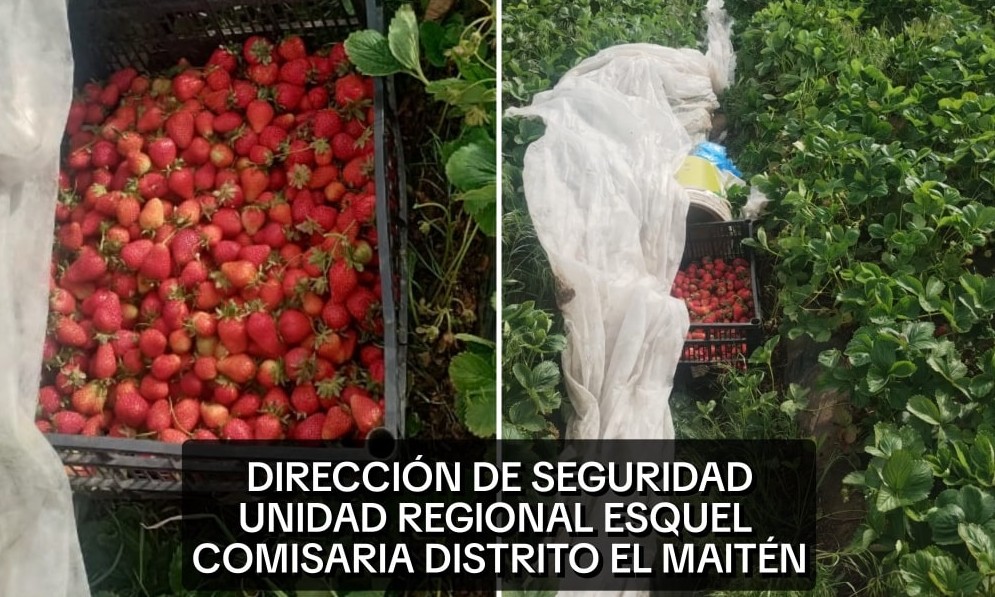 La Comisaría Distrito El Maitén, dependiente de la Unidad Regional Esquel, informó que este lunes 24 de noviembre, alrededor de las 17:30 horas, personal policial acudió al predio de la empresa Pacta tras recibir el aviso sobre la presencia de un hombre dentro de la zona de plantaciones de frutilla.