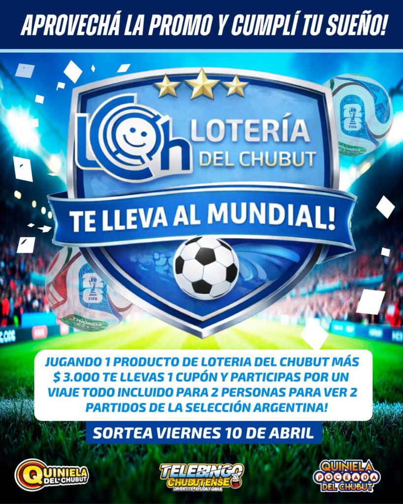 El Instituto de Asistencia Social (IAS) Lotería del Chubut presentó una nueva propuesta destinada a quienes participan de sus juegos oficiales en toda la provincia. La iniciativa permitirá competir por un viaje todo incluido para dos personas a Dallas, Texas (Estados Unidos), con la posibilidad de ver en vivo dos partidos de la Selección Argentina en el próximo Mundial de Fútbol.