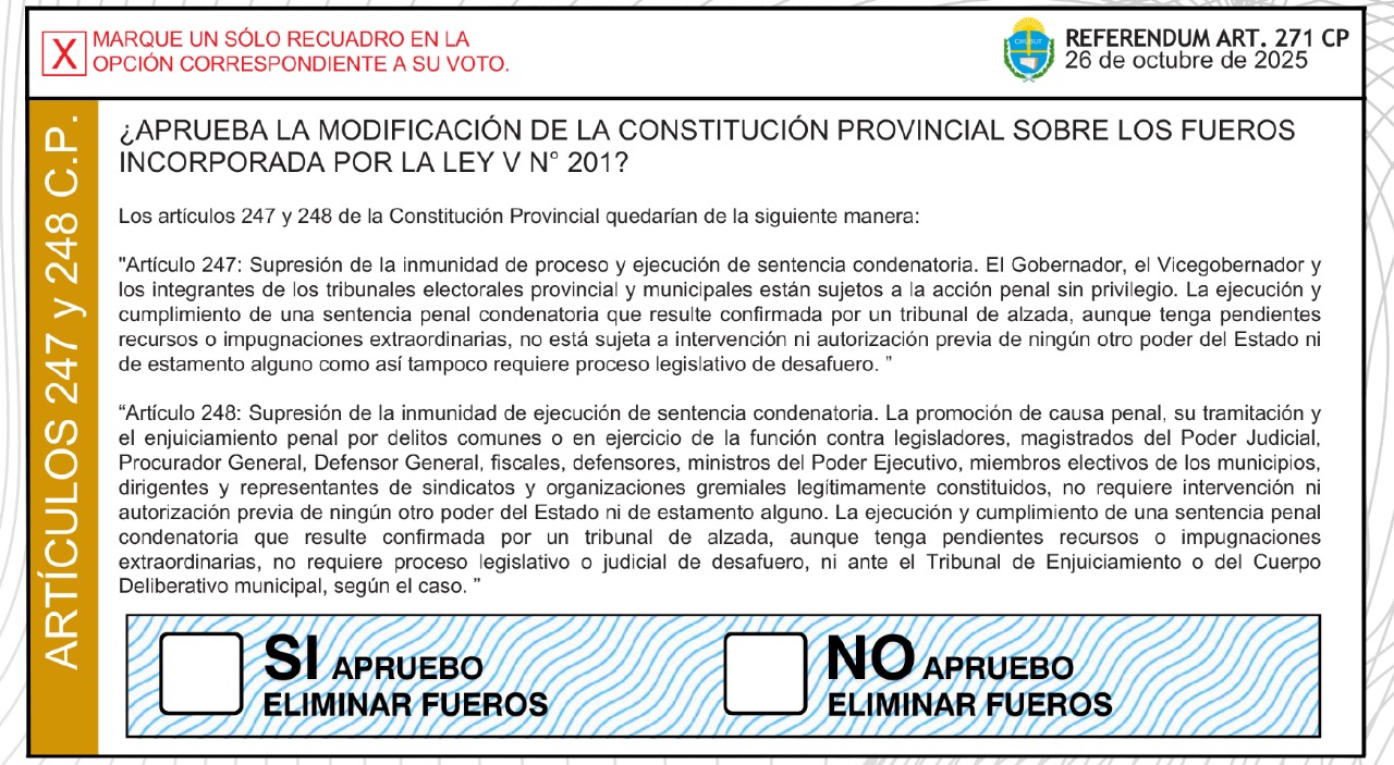 En Chubut, se votará únicamente para diputados nacionales (dos bancas en juego), junto con el referéndum popular sobre los fueros y la elección de representantes al Consejo de la Magistratura en las circunscripciones de Esquel y Trelew.