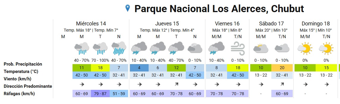 El pronóstico meteorológico para este miércoles 14 de enero es uno de los elementos centrales que condiciona el combate del incendio en el Parque Nacional Los Alerces, en el noroeste de la provincia del Chubut.