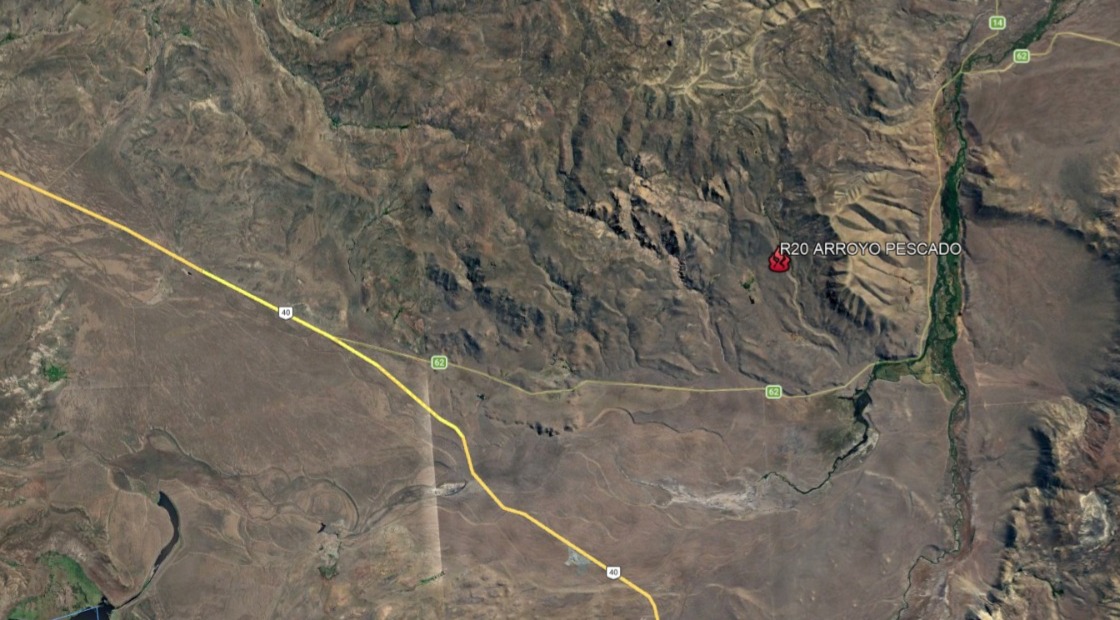 Un incendio de campo moviliza este domingo a distintos organismos de emergencia en la zona de Arroyo Pescado, a unos 10 kilómetros del empalme de la Ruta Nacional 40 y la Ruta Provincial 62, y unos 40 km. en línea recta a Esquel.