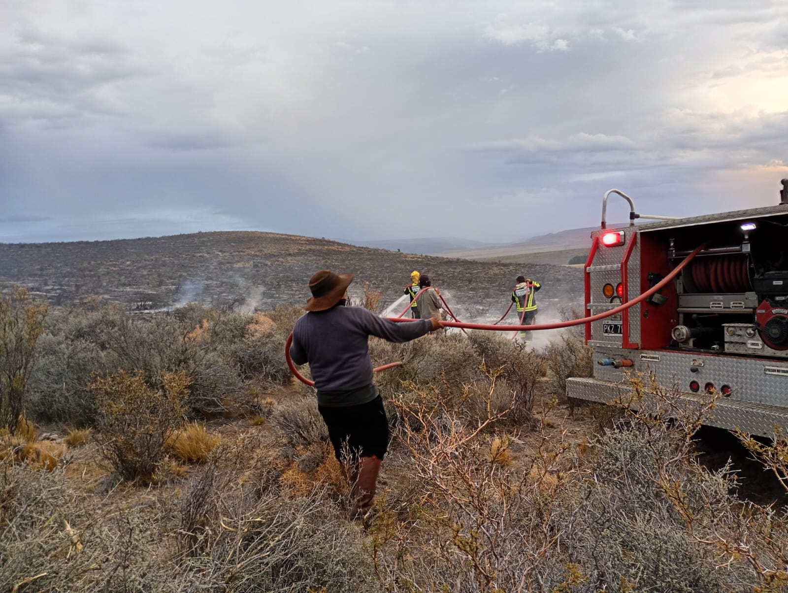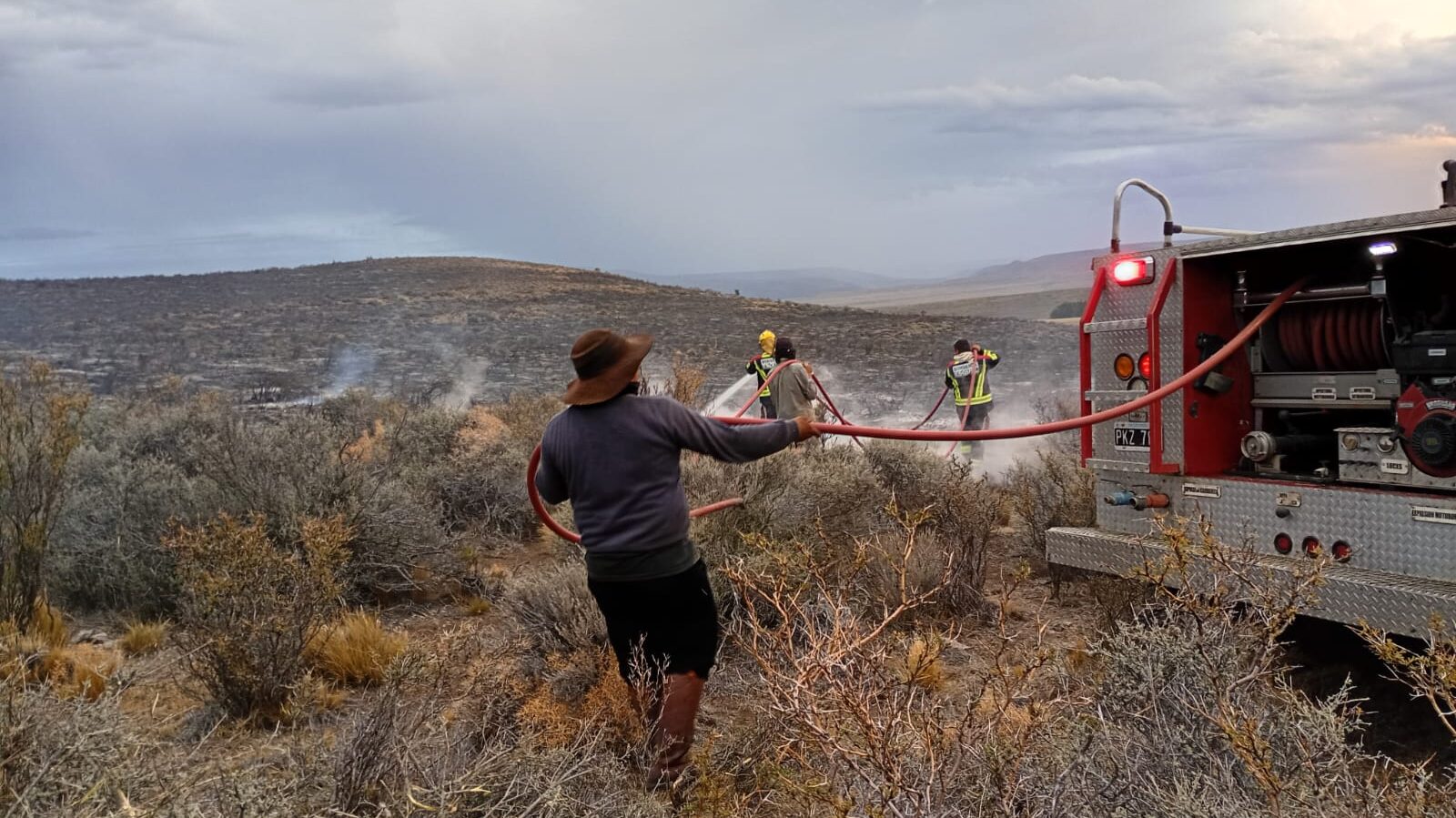 El incendio fue combatido por brigadistas del Servicio Provincial de Manejo del Fuego, Bomberos Voluntarios de Esquel, personal de la Subsecretaría de Protección Ciudadana, además de trabajadores del propio establecimiento rural, con apoyo de un avión hidrante.