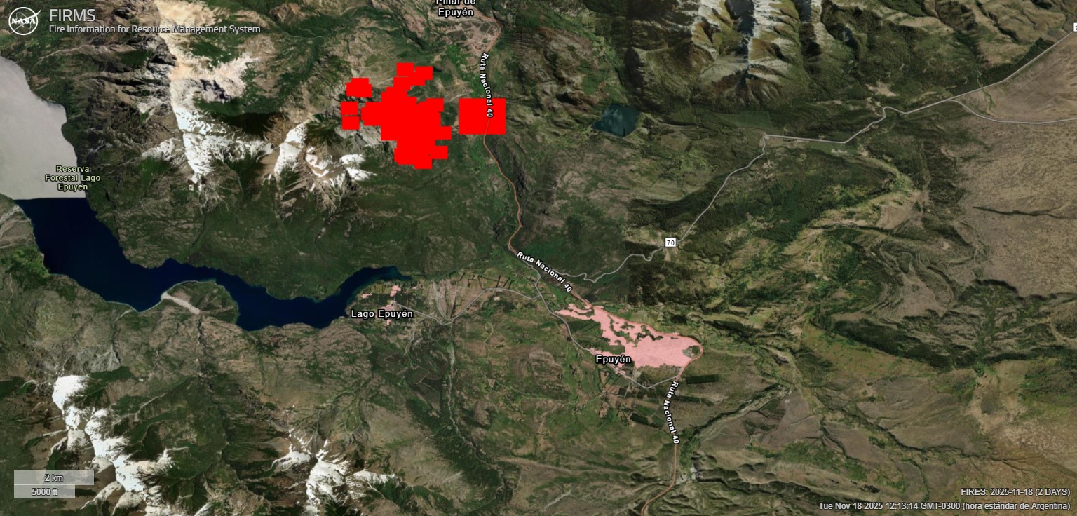 El fuego se encuentra a unos 5 km en línea recta del casco urbano de Epuyén. Aunque Nievas consideró que “teóricamente no debería avanzar hacia el pueblo”, advirtió que el comportamiento del incendio es imprevisible y que deben mantenerse todas las precauciones.