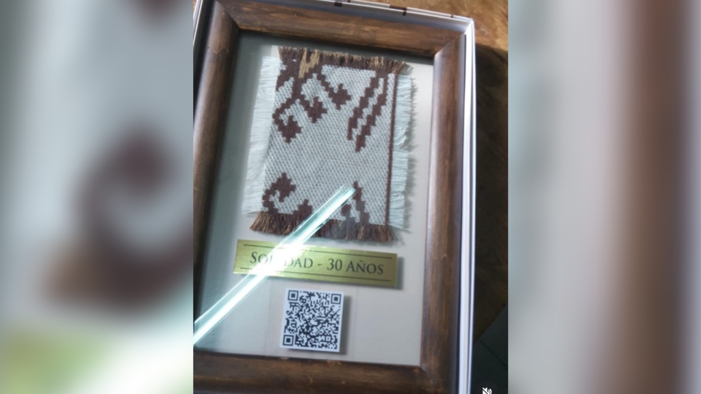 Durante su paso por el parque, la artista protagonizó un momento especial al entregar un obsequio simbólico al personal del lugar. En este caso, hizo entrega de un cuadro con un retazo de su emblemático poncho a Juan Pinilla, responsable del Centro de Informes.