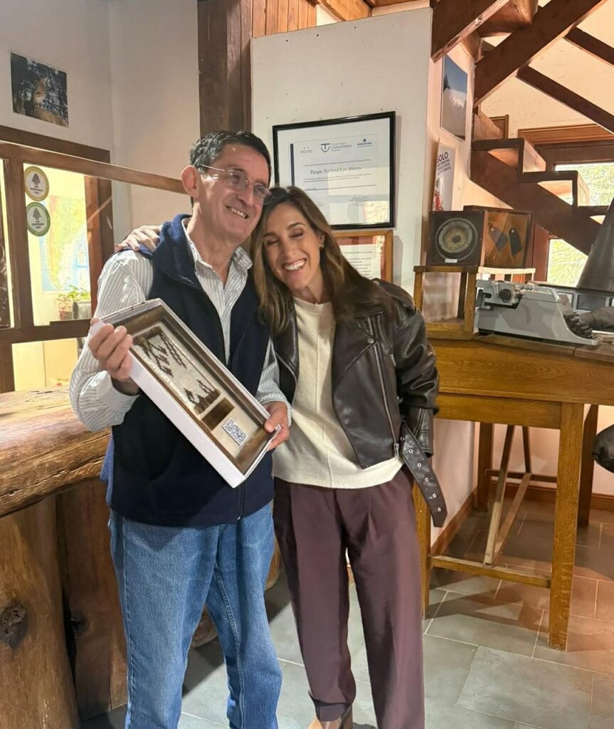 El gesto fue interpretado como un recuerdo de su visita y un reconocimiento al valor natural y cultural que representa el Parque Nacional Los Alerces, uno de los destinos más emblemáticos de la Patagonia.