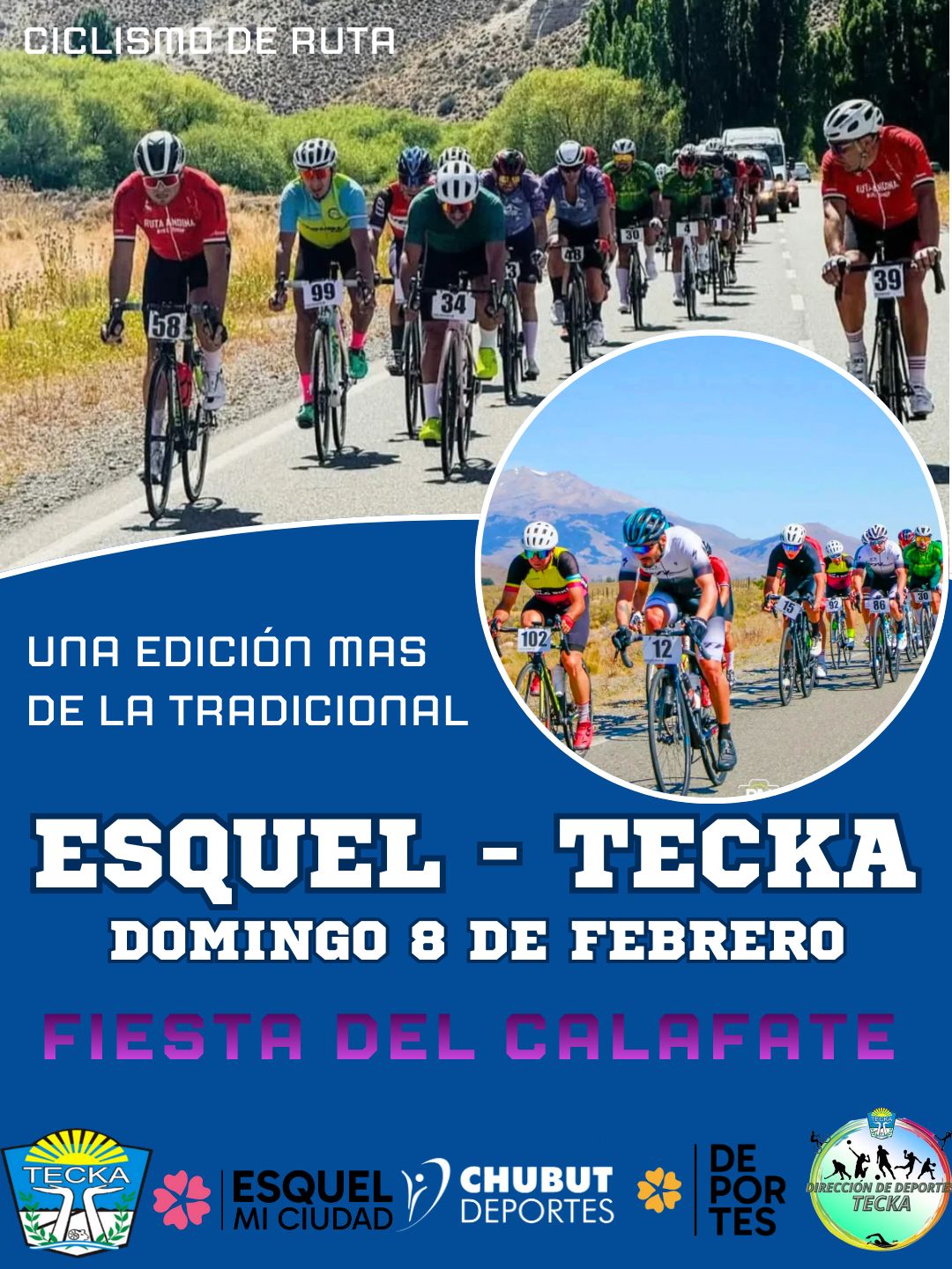 La tradicional carrera de ciclismo Esquel–Tecka fue presentada oficialmente en conferencia de prensa como una de las actividades deportivas centrales de la 36° Fiesta Provincial del Calafate, que se desarrollará en la localidad de Tecka. El anuncio contó con la participación del intendente Jorge Seitune, el secretario de Deportes de Tecka, Damián Leiva, el subsecretario de Deportes de Esquel, Hernán Maciel, y Lucas de Godos, en representación de Chubut Deportes.