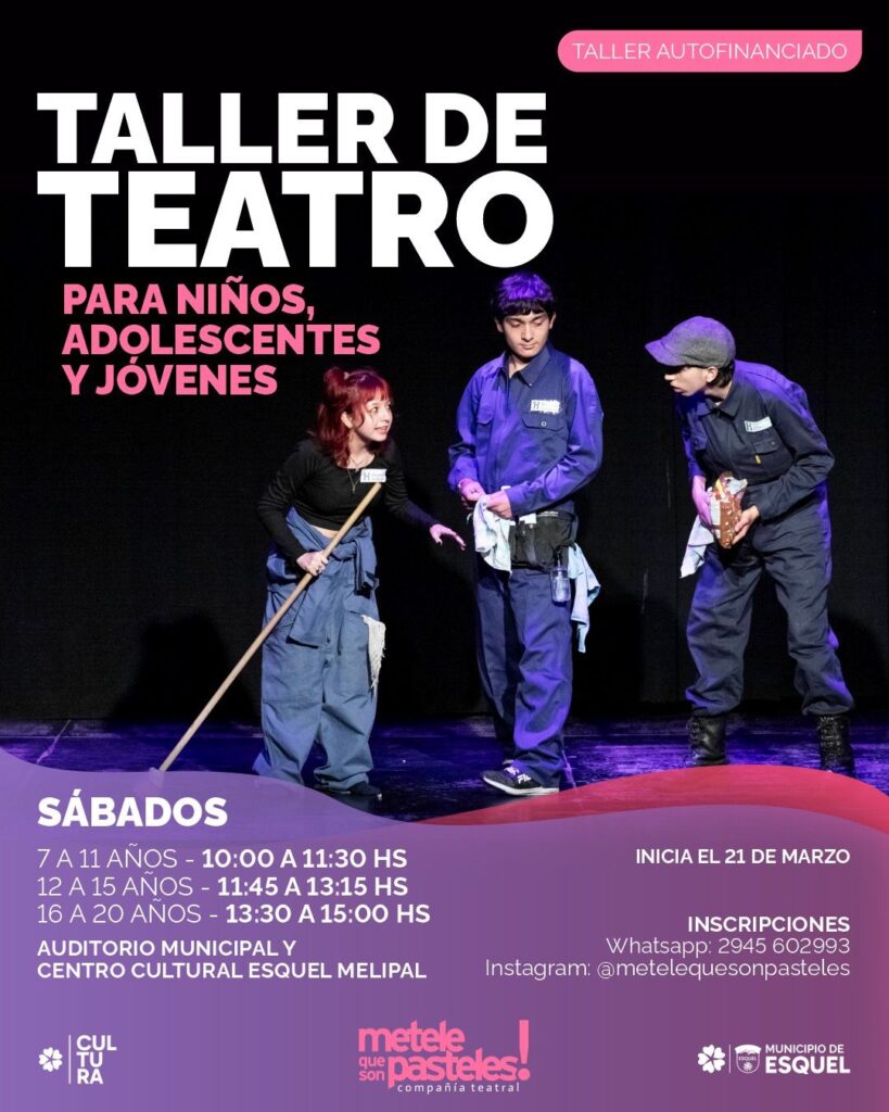 Con el espíritu lúdico y creativo que caracteriza a la Compañía de Teatro Metele que son pasteles, ya están abiertas las inscripciones para los talleres de teatro 2026 destinados a niños, adolescentes, jóvenes y adultos en Esquel.
