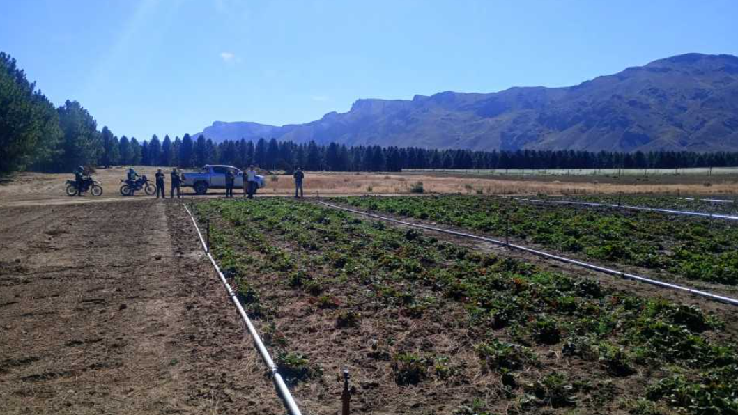 El procedimiento de este viernes se vincula con una causa iniciada en octubre de 2025, cuando la Fiscalía de Lago Puelo, con asiento en El Hoyo, investigó un presunto hurto agravado por la sustracción de plantines de frutilla, considerados productos separados del suelo y de alto valor económico.