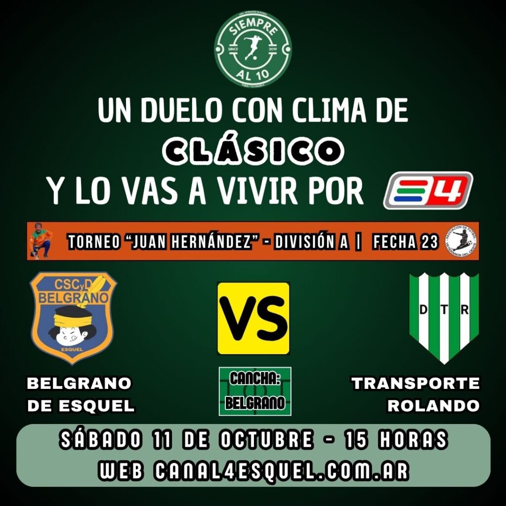 Este sábado, desde las 15 horas, se vivirá un nuevo capítulo de una rivalidad que ya es parte del deporte local: Belgrano y Transporte Rolando se enfrentan por la división A de la categoría Senior del Torneo «Juan Hernández», y el partido podrá verse en vivo a través de la web de Canal 4.