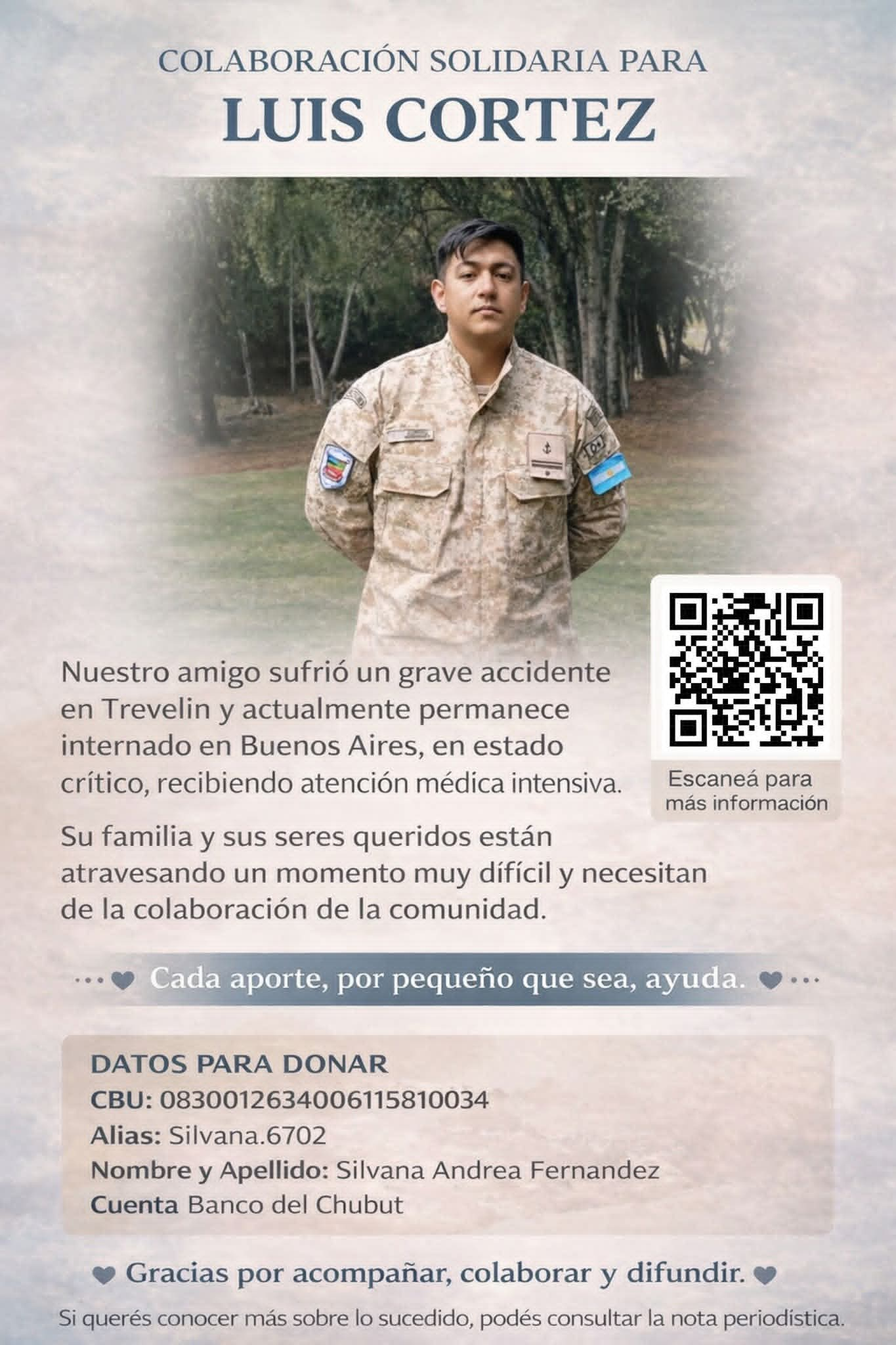 También agradeció las muestras de acompañamiento que han recibido desde distintos puntos de la región. “Estoy muy agradecida con toda la gente que ha colaborado, con quienes mandan mensajes y están hablando por Luis. Desde el minuto uno sentimos el apoyo, tanto de acá como de Bariloche, Trevelin y otros lugares”, señaló.