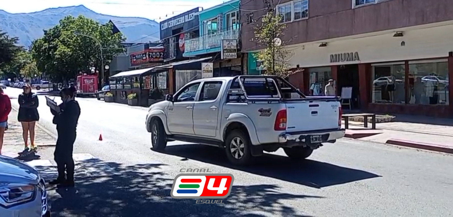 El hecho ocurrió este miércoles cerca del mediodía en la intersección de Avenida Alvear y 25 de Mayo, en pleno centro de Esquel. La víctima fue asistida y trasladada al hospital de manera preventiva. Durante el operativo, una turista fue multada por circular en contramano.